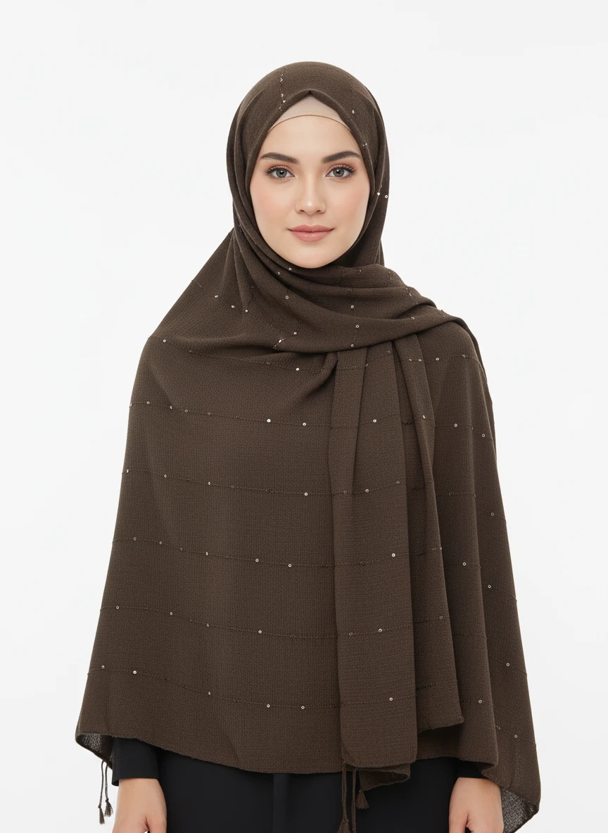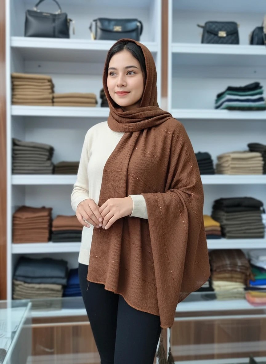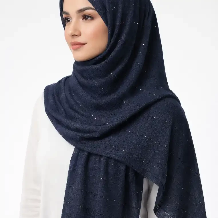شال پولک دار یک کار بسیار عالی با عرض زیاد بسیار سبک و خنک مناسب فصل با ایستایی عالی رو سر